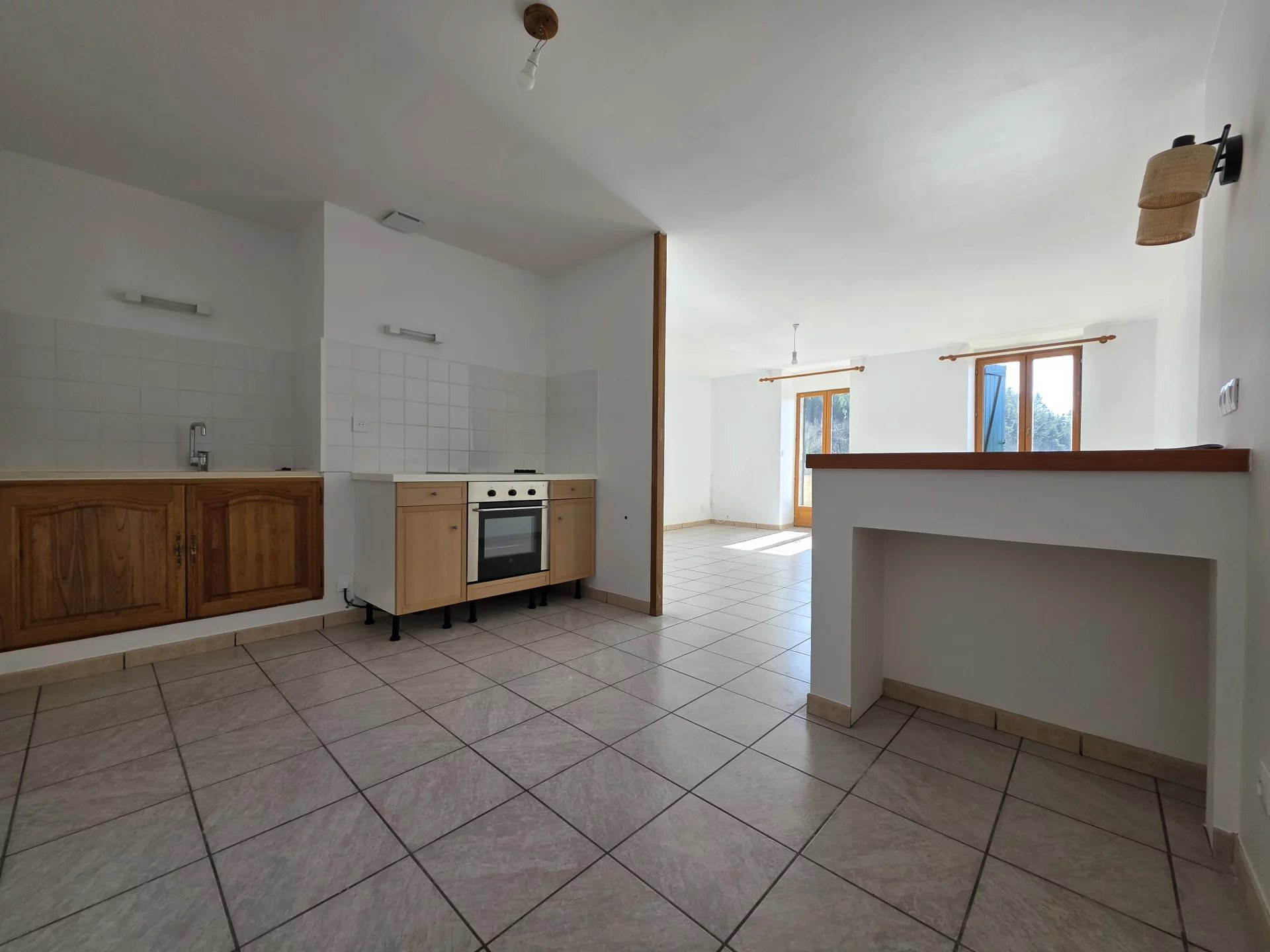 Logement lumineux de 89m2 comprenant : un hall d’entrée, une cuisine ouverte sur salon – séjour, une buanderie, 2 chambres avec placard intégré, une spacieuse salle d’eau et des toilettes.