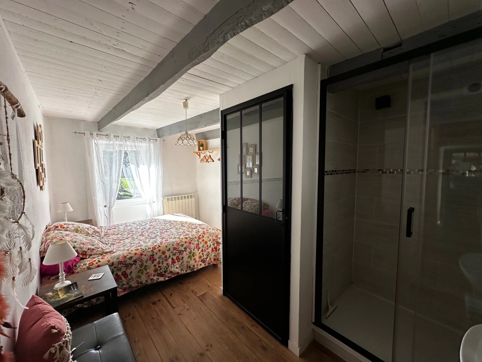 À l’étage, 2 mezzanines, 2 pièces mansardées pour espace de couchage supplémentaire et un grand débarras de plus de 8 m².