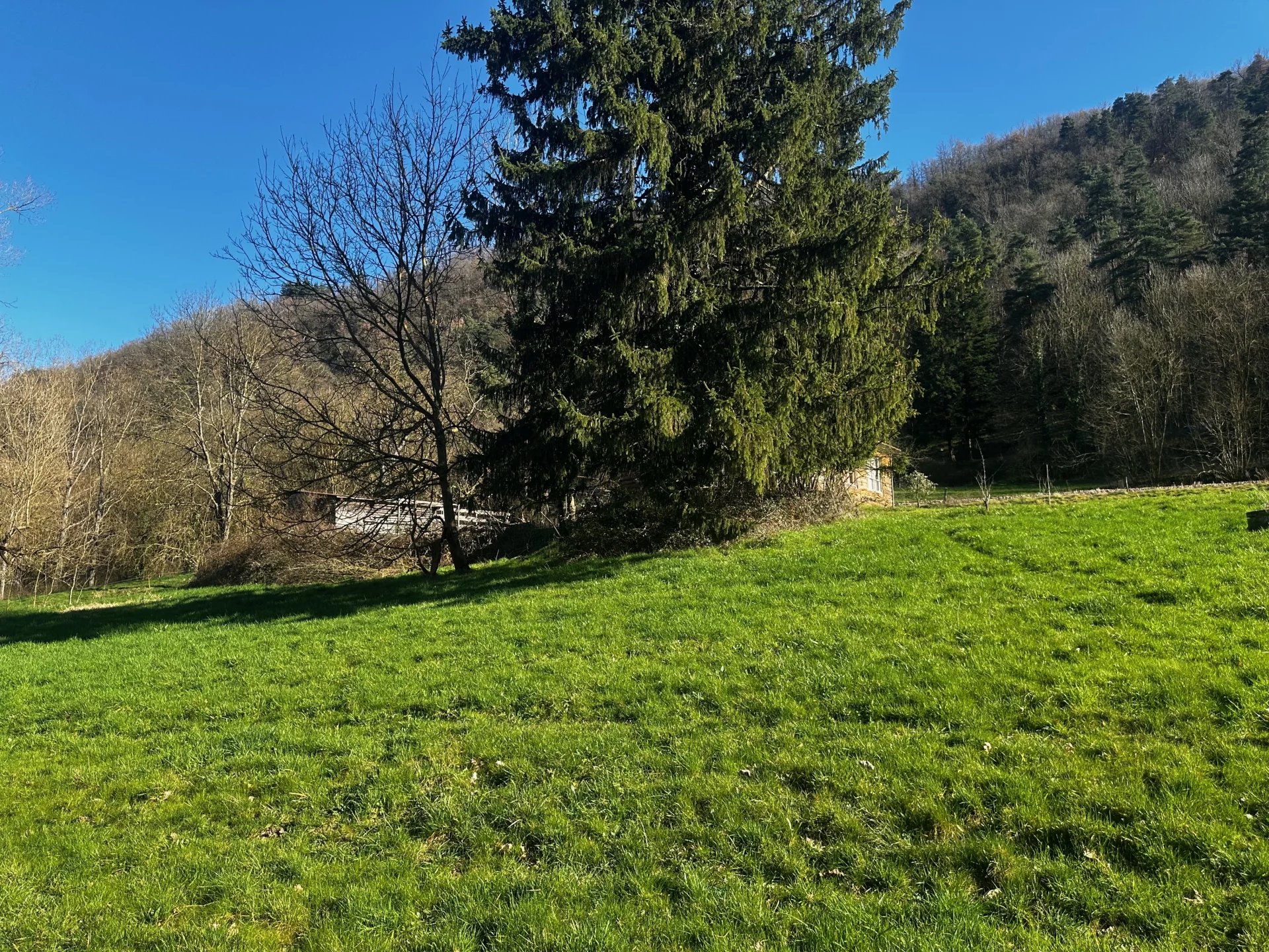 En complément, un chalet indépendant à rénover d’une superficie d’environ 70 m² au sol, avec terrasse. Également raccordé à l’eau et à l’électricité.