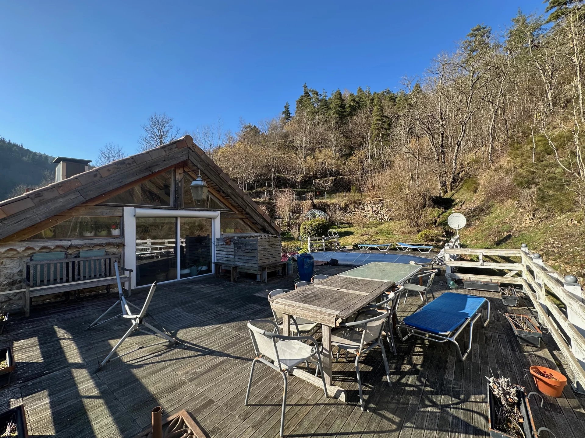 Dans la vallée du doux au nord de l’Ardèche, proche d’un village très belle maison en pierre de 263,26m² plein sud avec terrain attenant et non attenant comprenant :