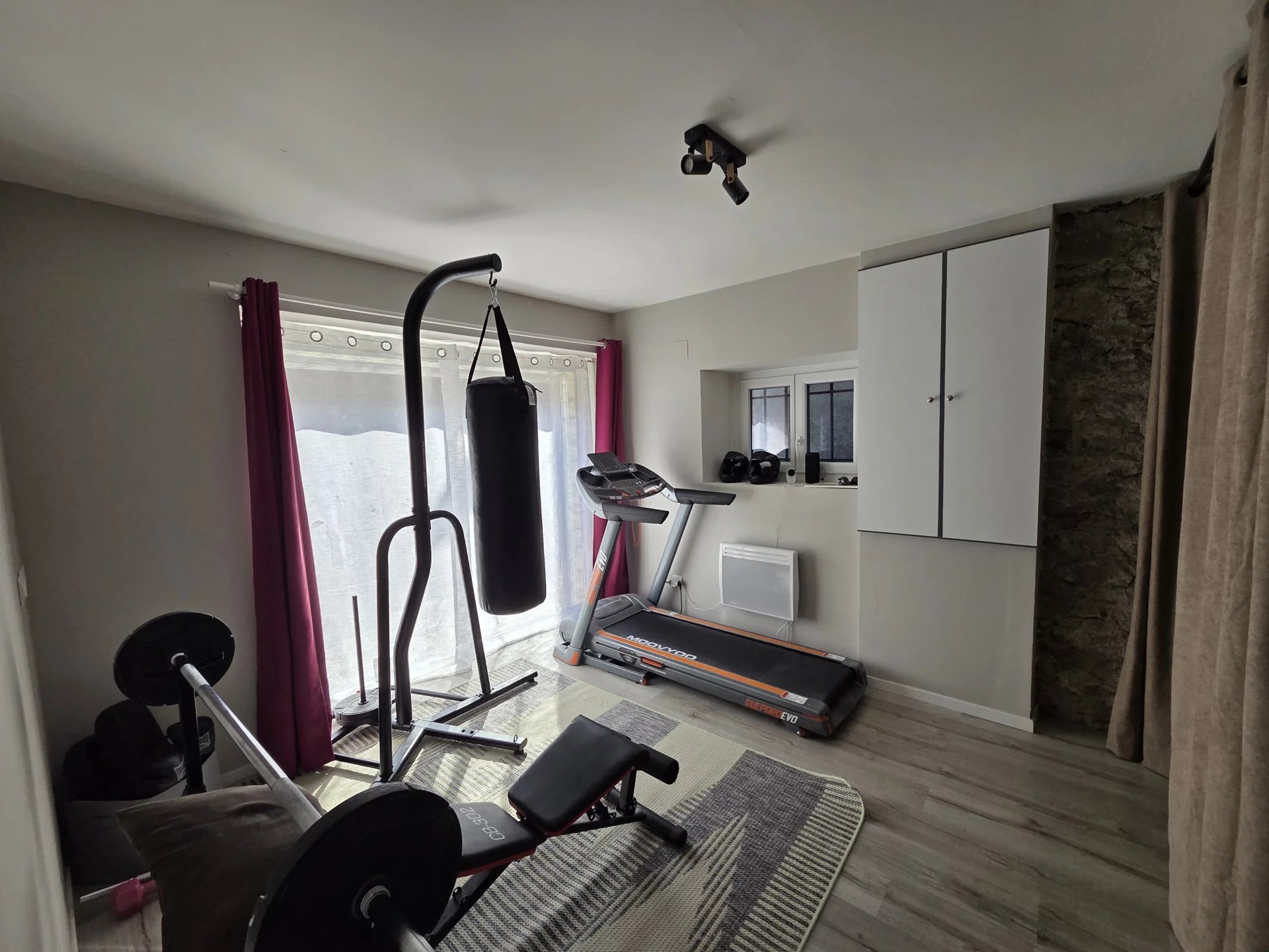 Rez-de-chaussée : Entrée, pièce avec rangement, grande chambre avec coin dressing, dégagement, chambre/pièce, salle d’eau, w.c